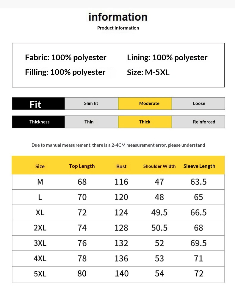 Sizes: M, L, XL, 2XL, 3XL, 4XL, 5XL